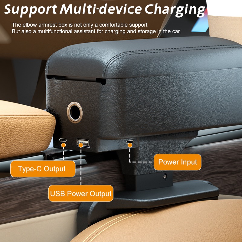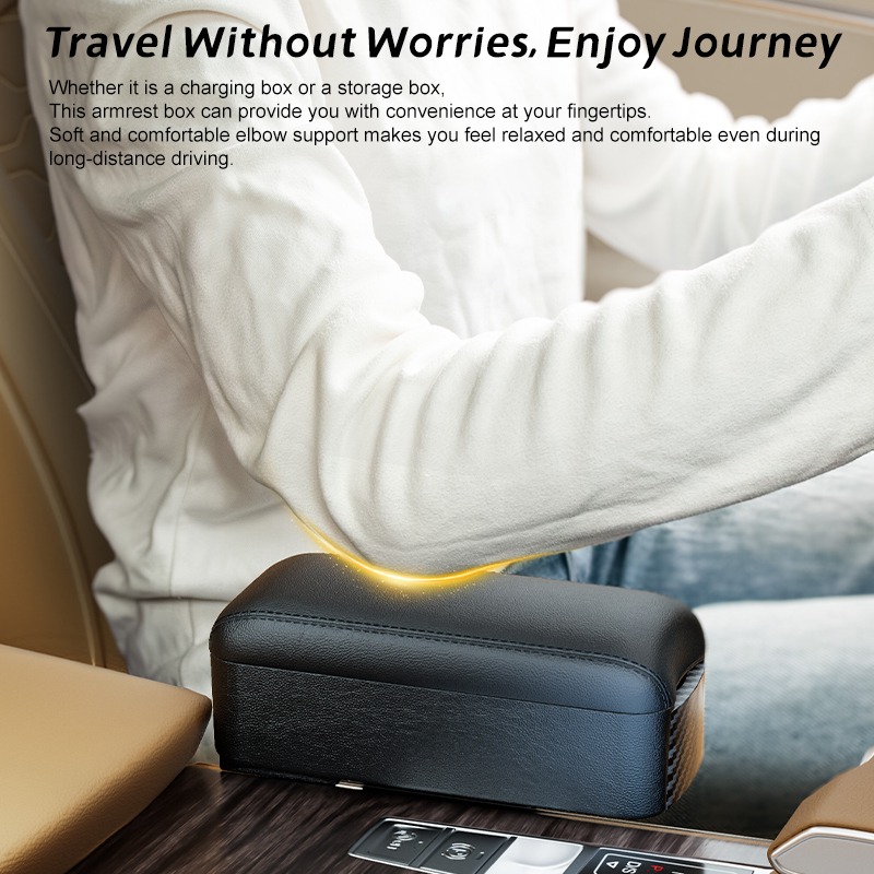 1pc Charging Function Car Armrest Box with Hidden Cup Holder – Adjustable Forearm Wrist Support, Liftable Central Console Organizer & Seat Gap Filler for Most Car Models, Universal Storage Solution for Vehicle Organization (Without power supply)